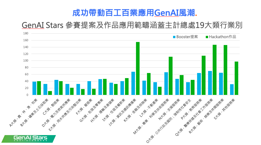 GenAI Stars競賽「創新創業組、「創意創客組」提案,涵蓋19大類行業。圖片:台大智活。