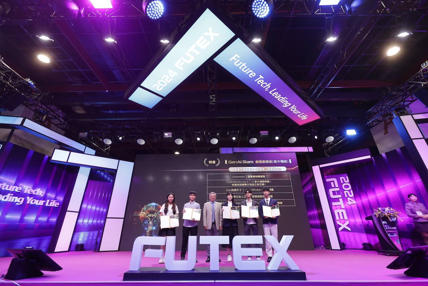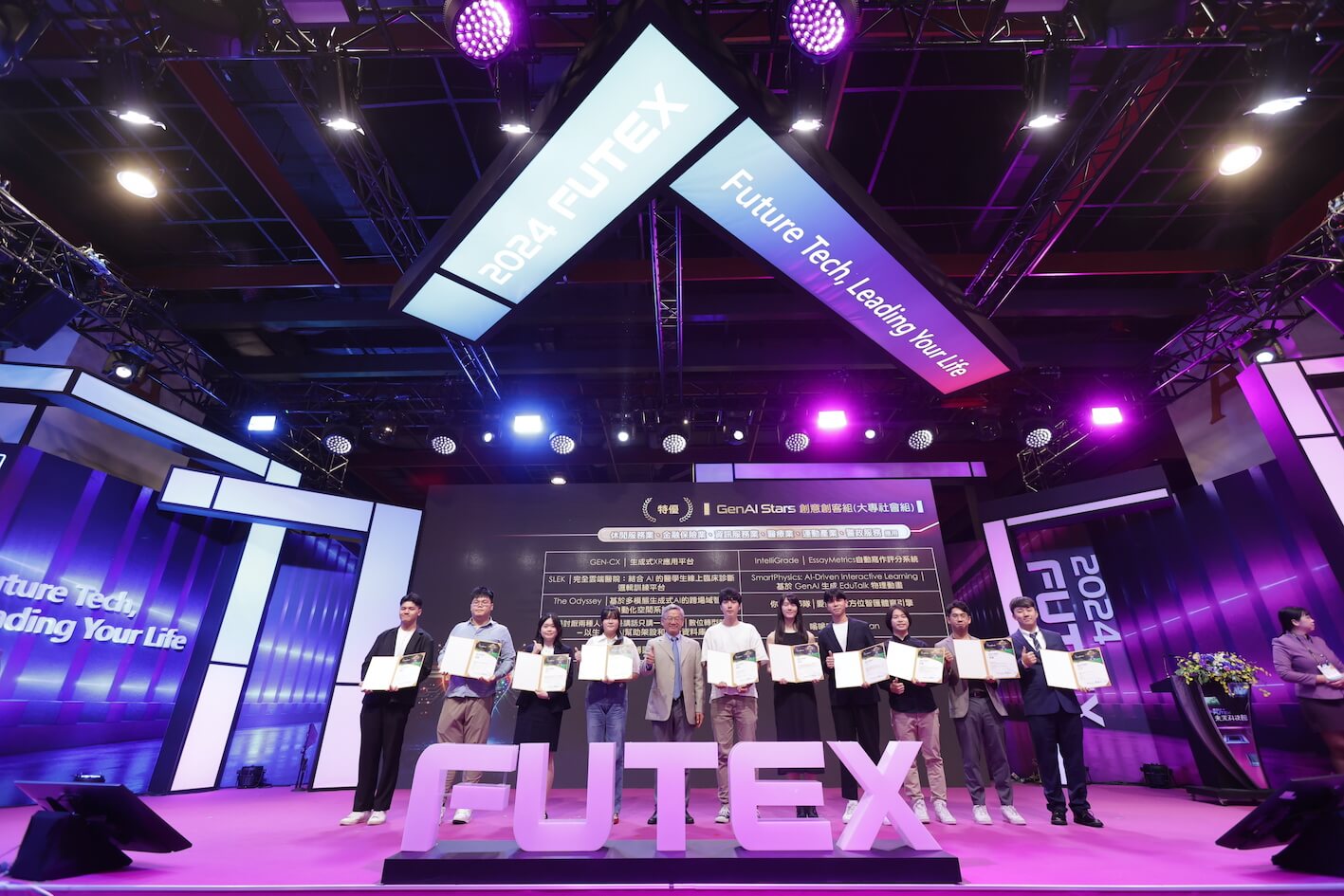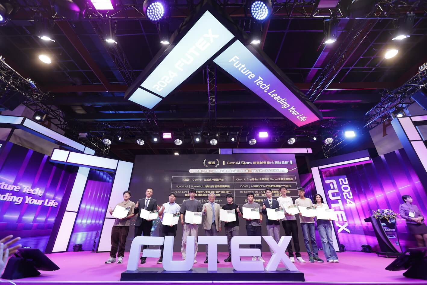 GenAI Stars生成式AI百工百業應用選拔,由國科會主辦,台大智活中心、台北市電腦公會、科政中心共同執行,分為創新創業組、創意創客組兩大組別,10月19日在台灣創新技術博覽會未來科技館頒獎典禮揭曉創新創業組榮獲金獎、銀獎、銅獎及優質創新獎的8家企業,以及創意創客組大專社會組、高中組獲得特優、優選的30組團隊。