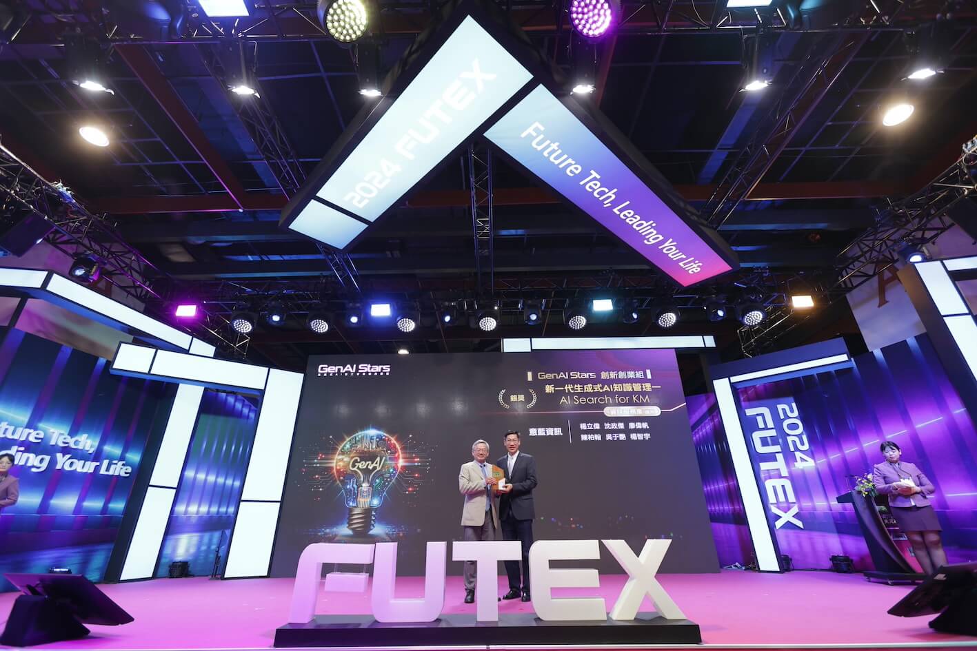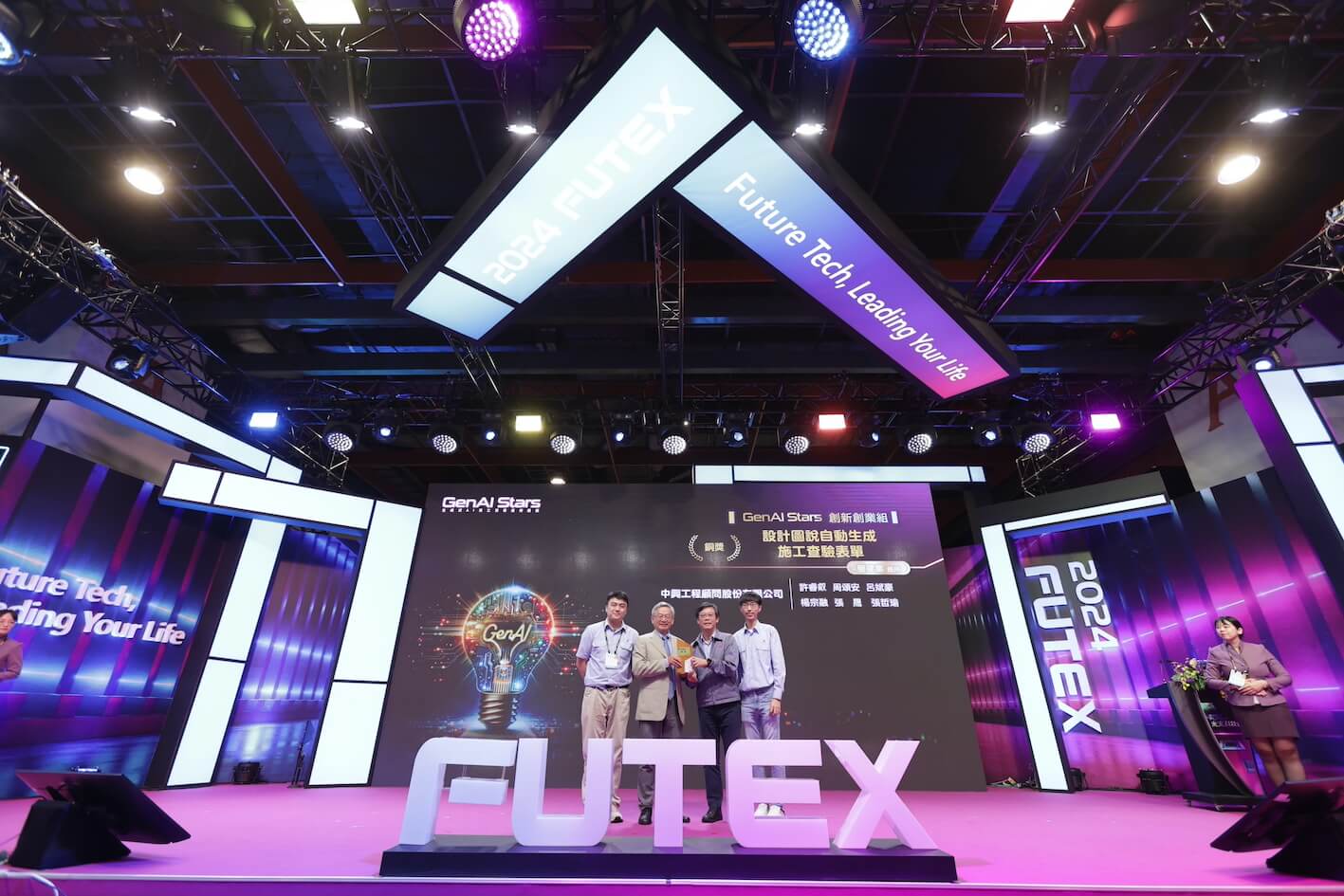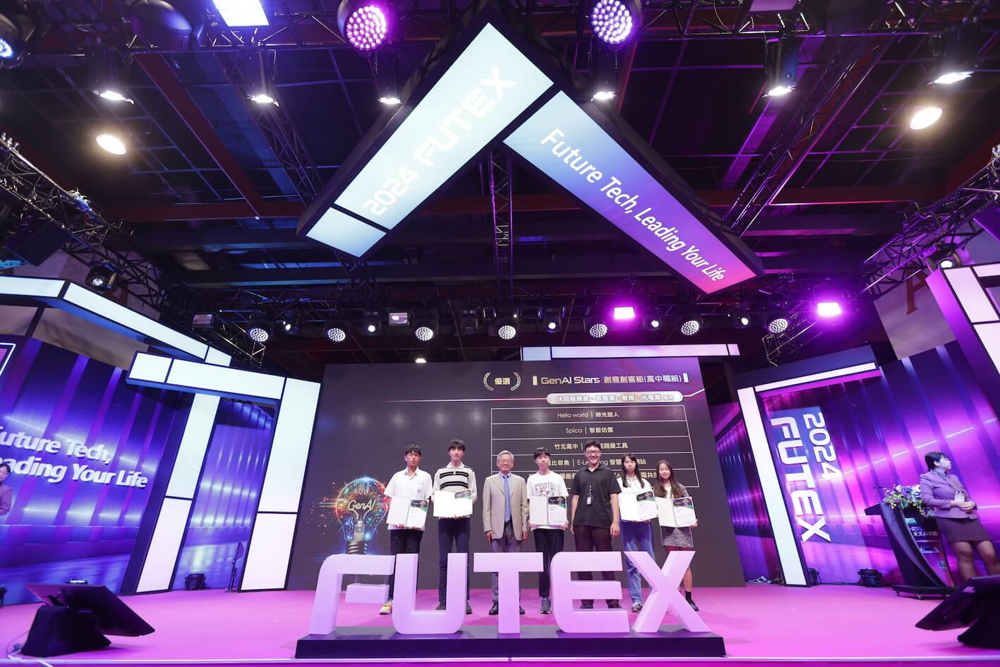 GenAI Stars生成式AI百工百業應用選拔,由國科會主辦,台大智活中心、台北市電腦公會、科政中心共同執行,分為創新創業組、創意創客組兩大組別,10月19日在台灣創新技術博覽會未來科技館頒獎典禮揭曉創新創業組榮獲金獎、銀獎、銅獎及優質創新獎的8家企業,以及創意創客組大專社會組、高中組獲得特優、優選的30組團隊。