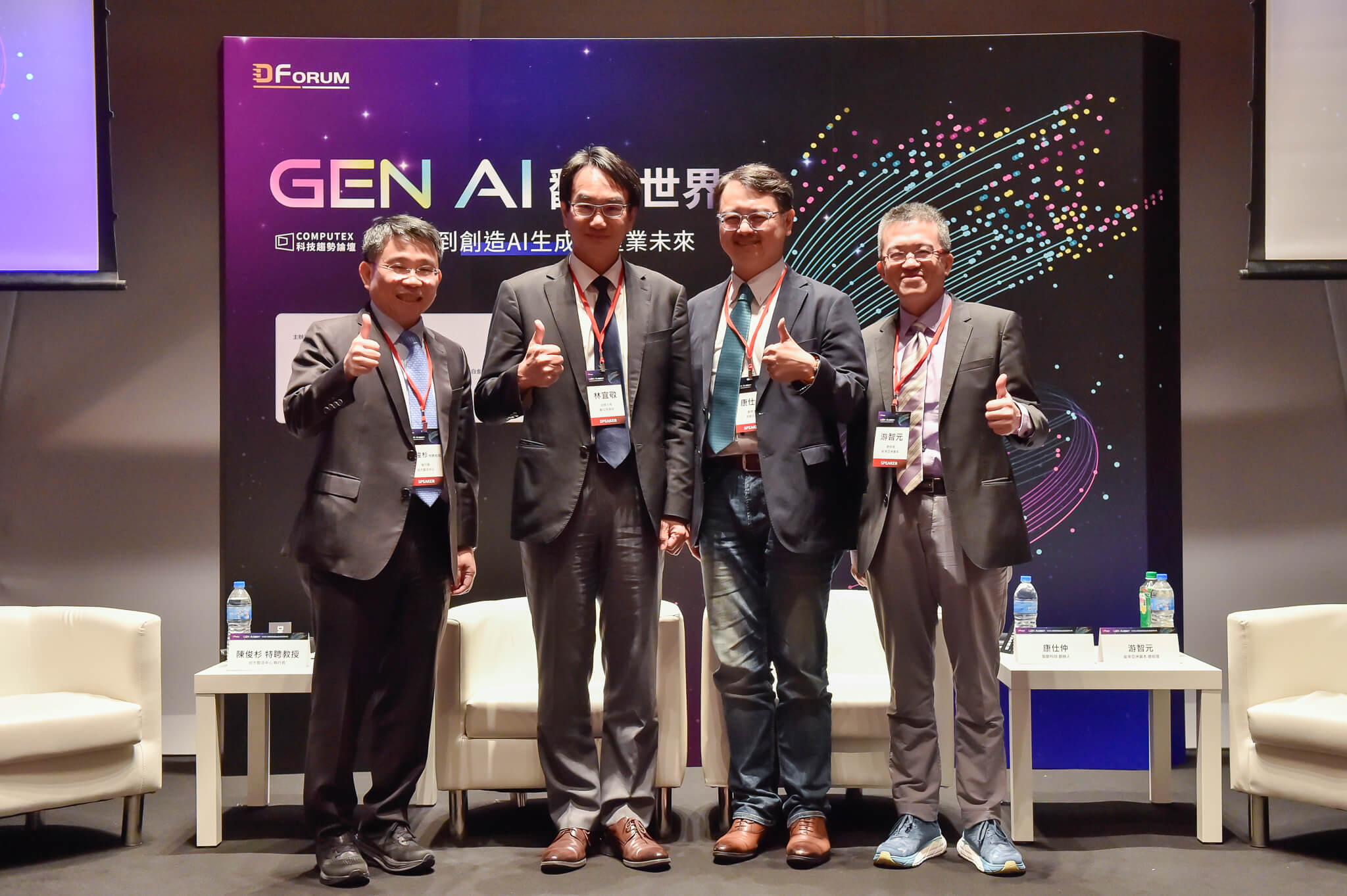 台大智活中心主任劉佩玲5/22在COMPUTEX「Gen AI 翻轉世界:從製造到創造AI生成的產業未來」論壇發表專題演講,台大智活中心執行長陳俊杉主持「AI產品與服務如何 go to market?」座談,邀請數位發展部政務次長林宜敬、能率亞洲資本總經理游智元、智齡科技執行長康仕仲等產官學專家,共同探討GenAI創新的挑戰與市場落地策略。